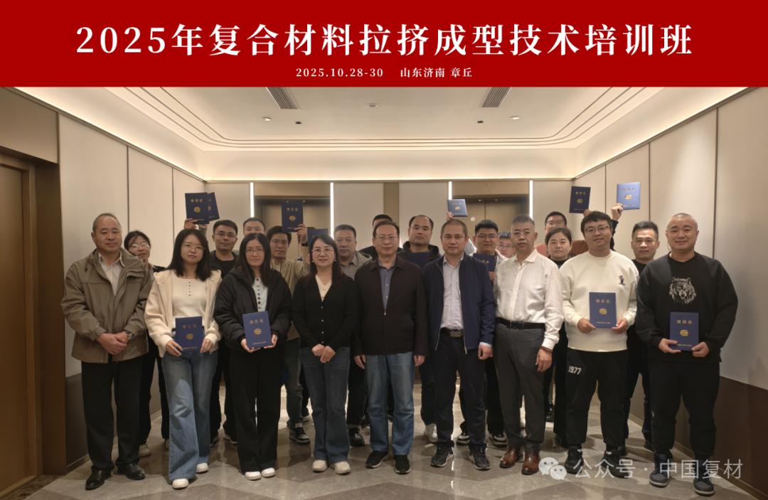 由中国复合材料工业协会主办的2025年复合材料拉挤成型技术培训班于2025年10月28-30日在山东济南章丘成功举办。在这秋高气爽的时节,来自全国各地的36位学员满怀期待,齐聚于此,共同开启了复合材料拉挤成型技术培训之旅。本次培训班的成功举办,为拉挤成型技术领域注入了新的活力与希望。